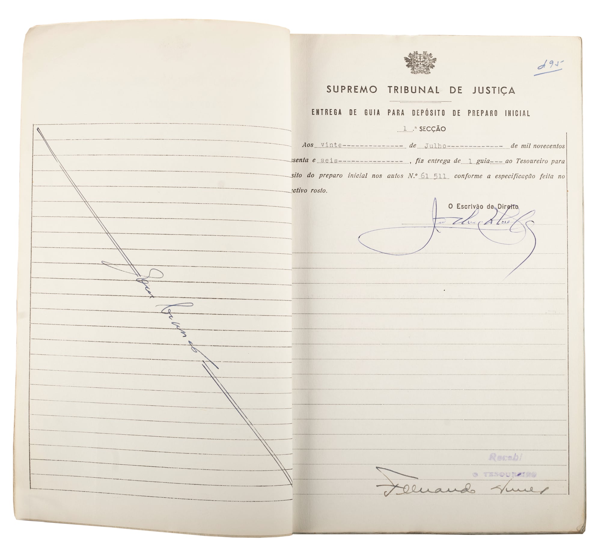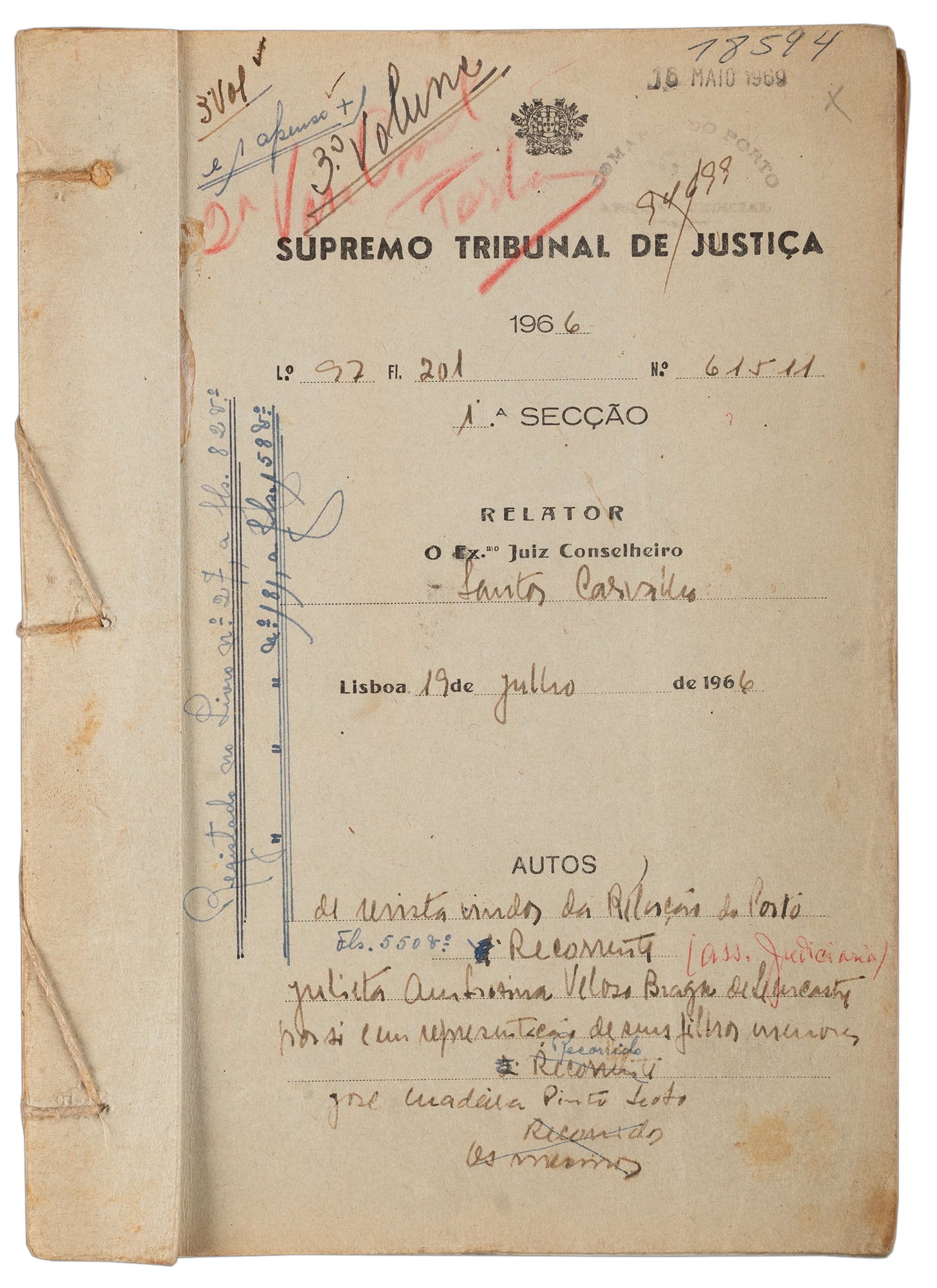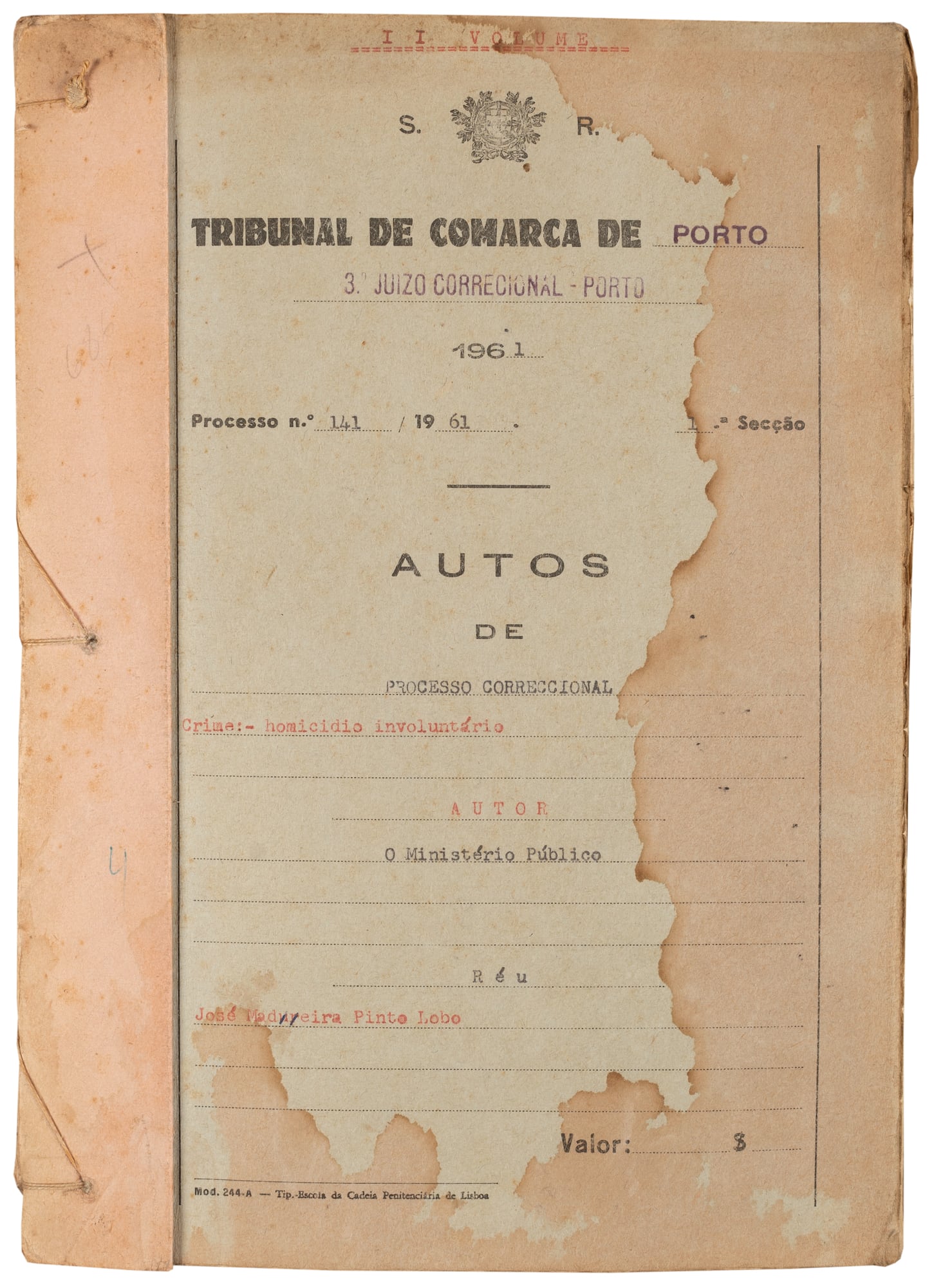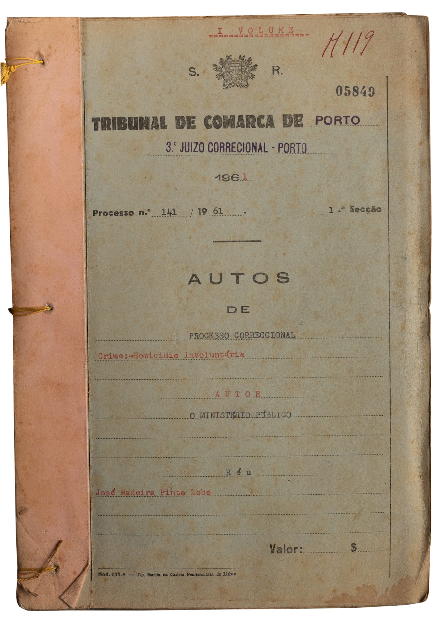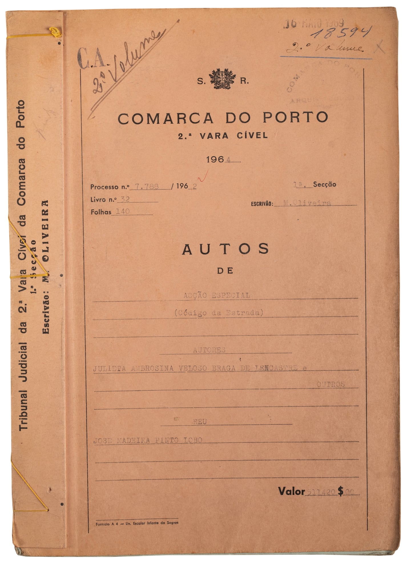 Proceso judicial de: Demanda especial (Código de la Circulación) en la que el acusado es José Madeira Pinto Lobo. Julieta Ambrosina Veloso Braga de Lencastre, viuda de José Lencastre, da inicio al proceso aún pendiente de recurso del procedimiento penal, por homicidio involuntario, de José Lencastre, y tiene por objeto hacer valer la responsabilidad civil derivada del accidente de tráfico, en el que el automóvil en el que se encontraban los mismos fue arrastrado por una ola hasta el mar, que terminó por cobrarse la vida del marido de la demandada, por lo que se reclama una indemnización por todos los daños y perjuicios causados. El proceso judicial estuvo suspendido por diversas razones, y una sentencia del 11 de marzo de 1965 lo declaró improcedente, absolviéndose al acusado, decisión que fue confirmada por el Tribunal Supremo.