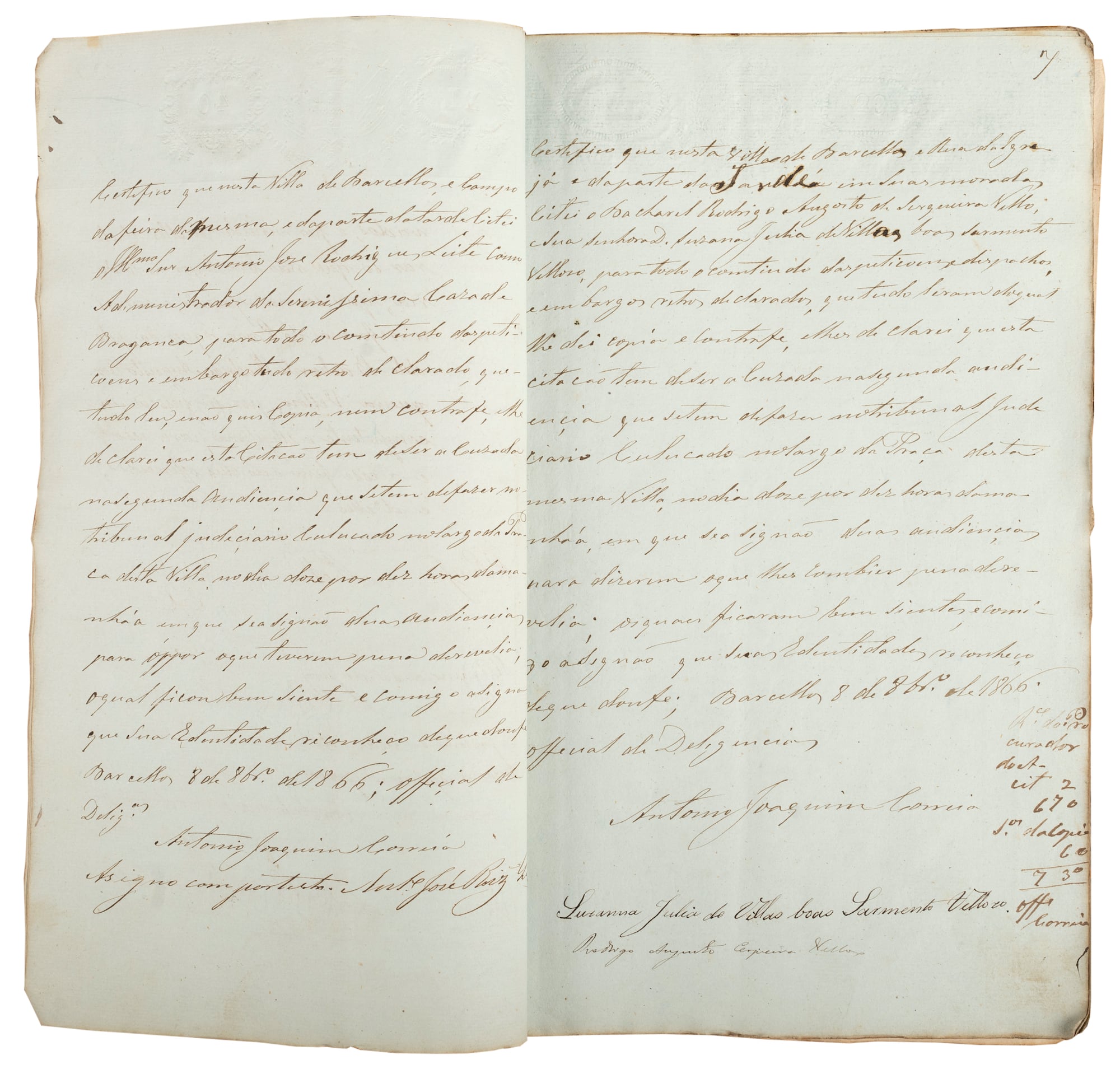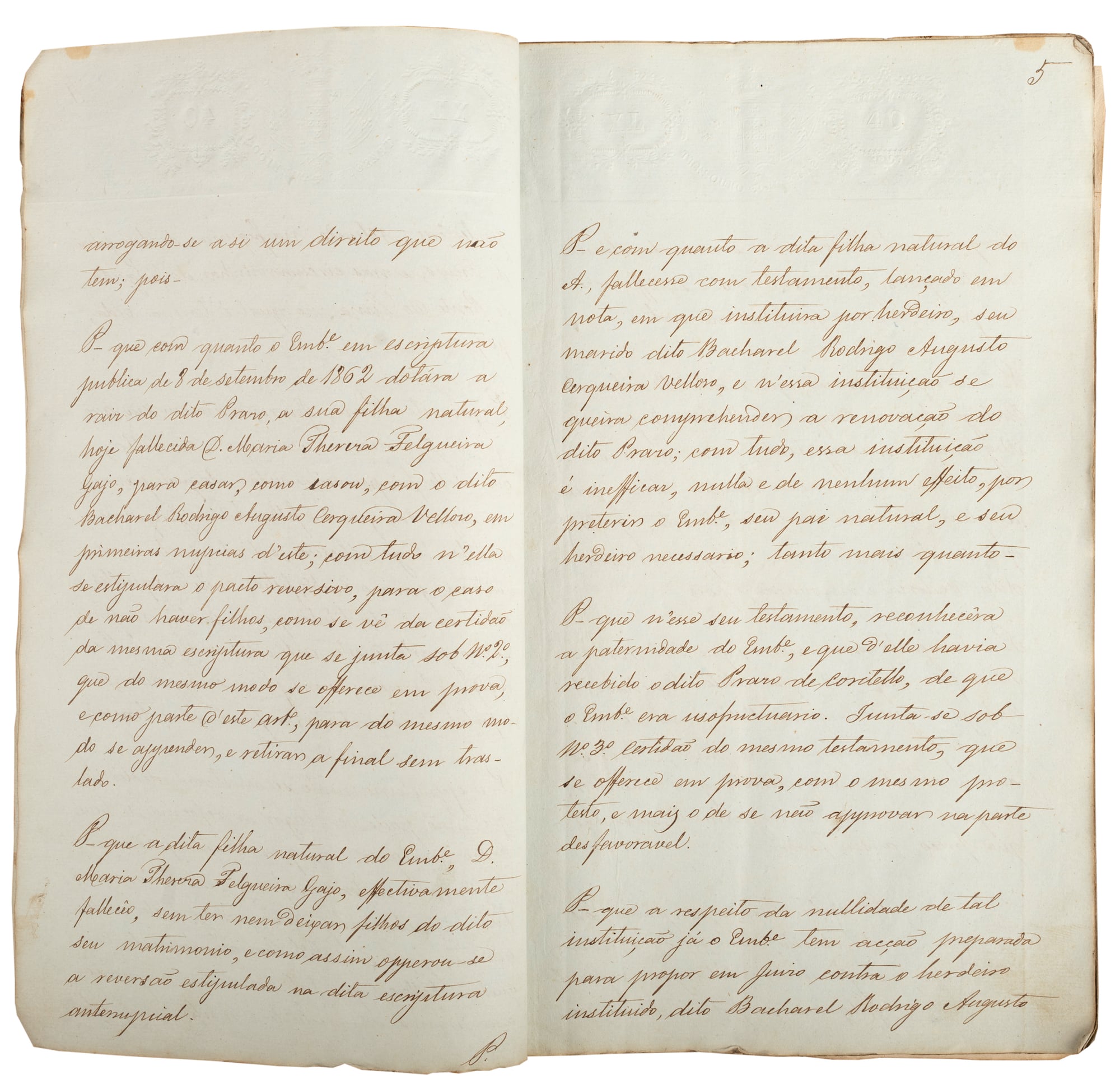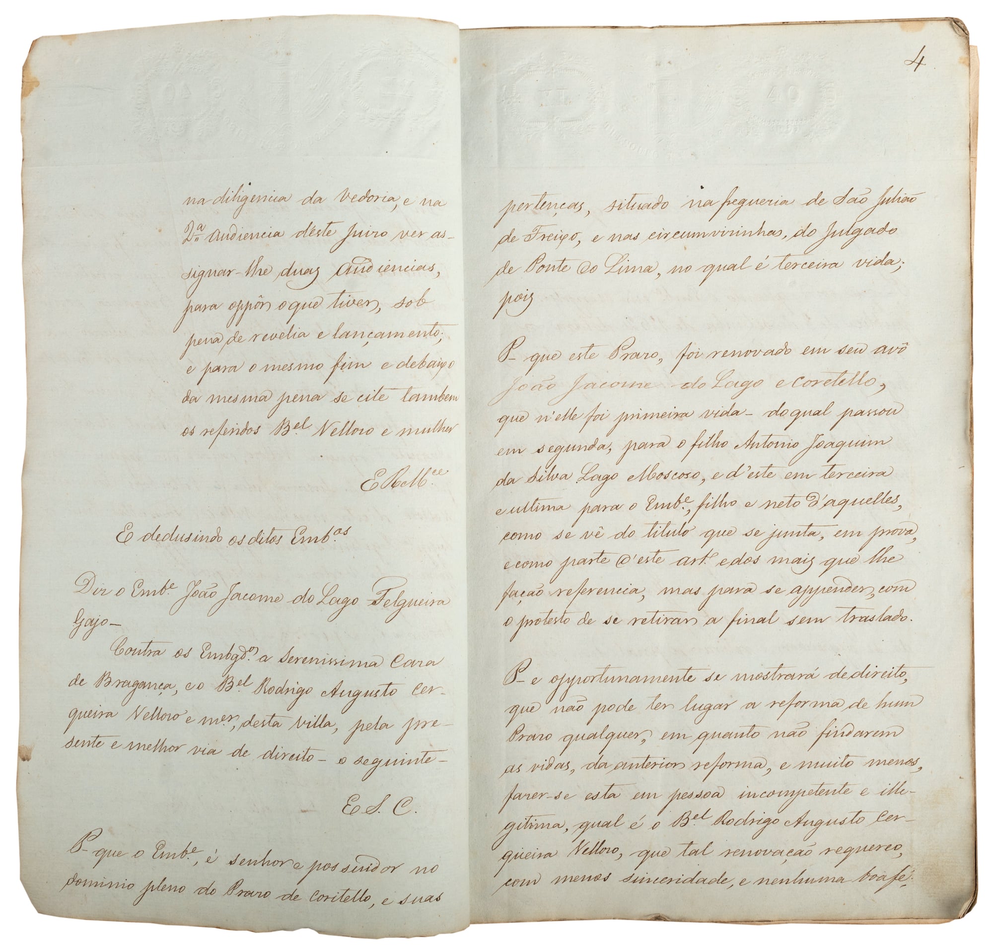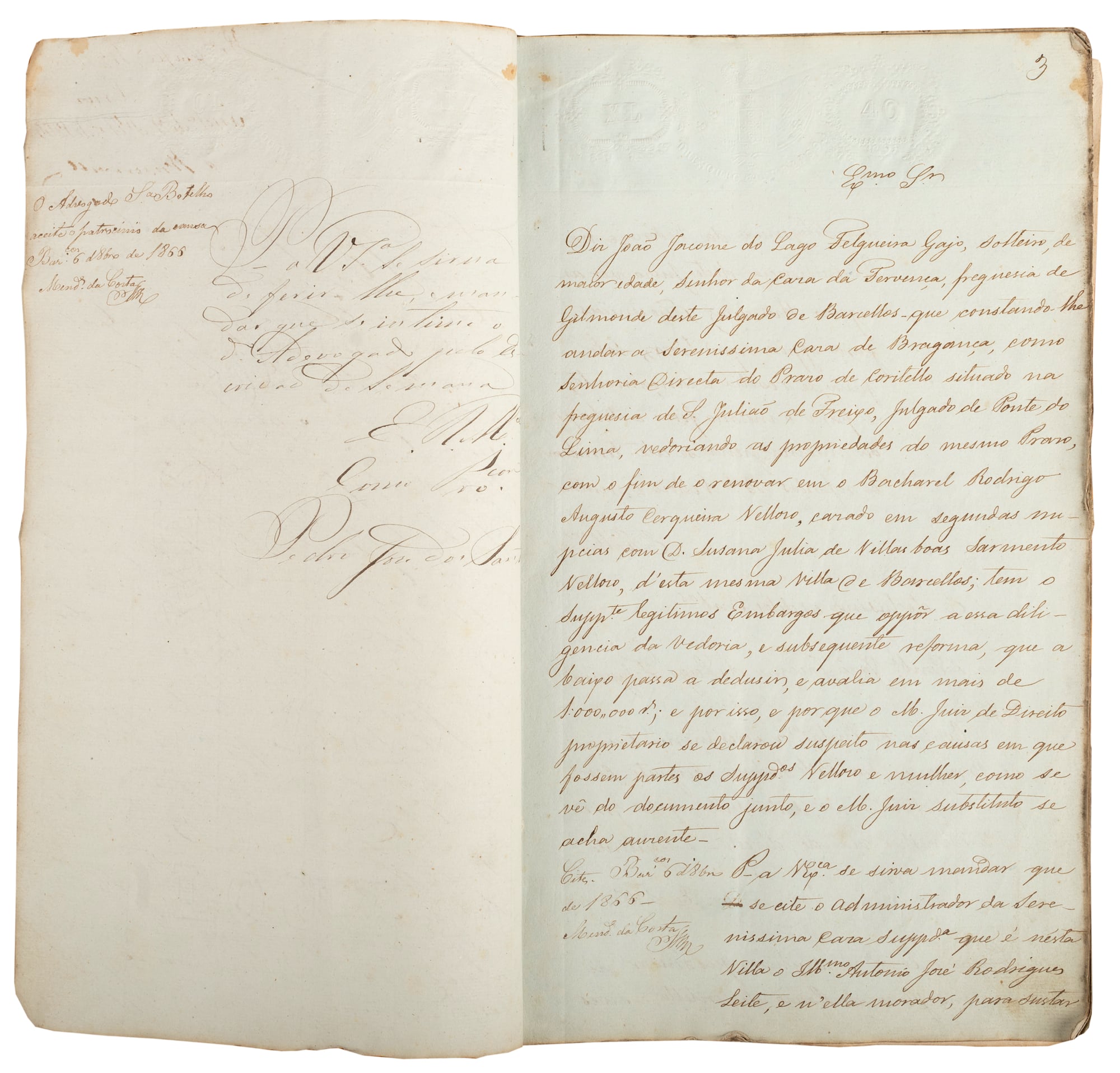 Proceso judicial de embargos a Vedoria e Medição do Prazo, en el que el embargante es el comendador Jacome do Lago Felgueira Gajo, y, los embargados, la serenísima Casa de Braganza y el bachiller Rodrigo Augusto Cerqueira Velloso y su esposa. El proceso se basa en una carta de emplazamiento a tres vidas relativa al Prado de Coritelo, en São Julião de Freixo, jurisdicción de Ponte de Lima.