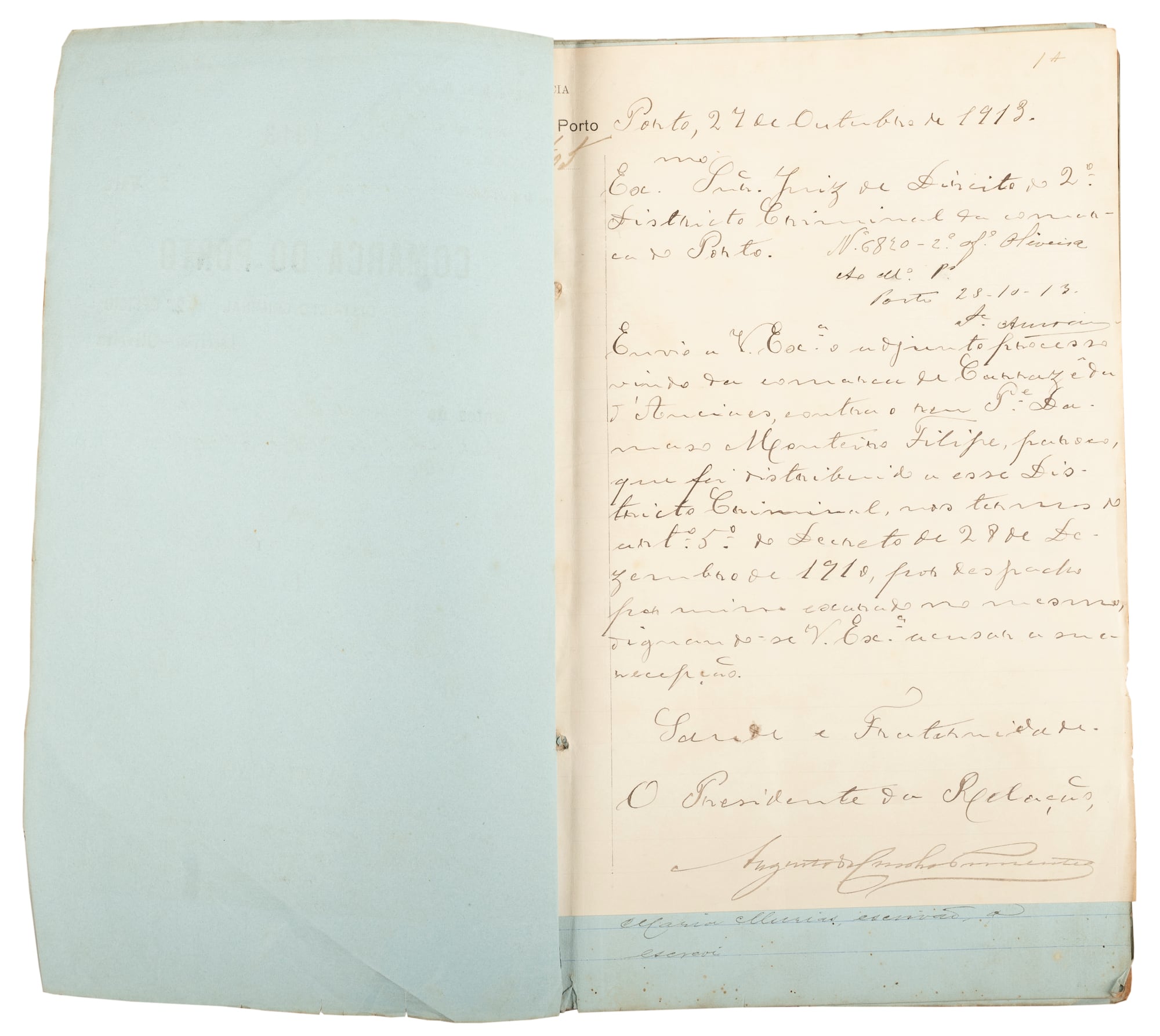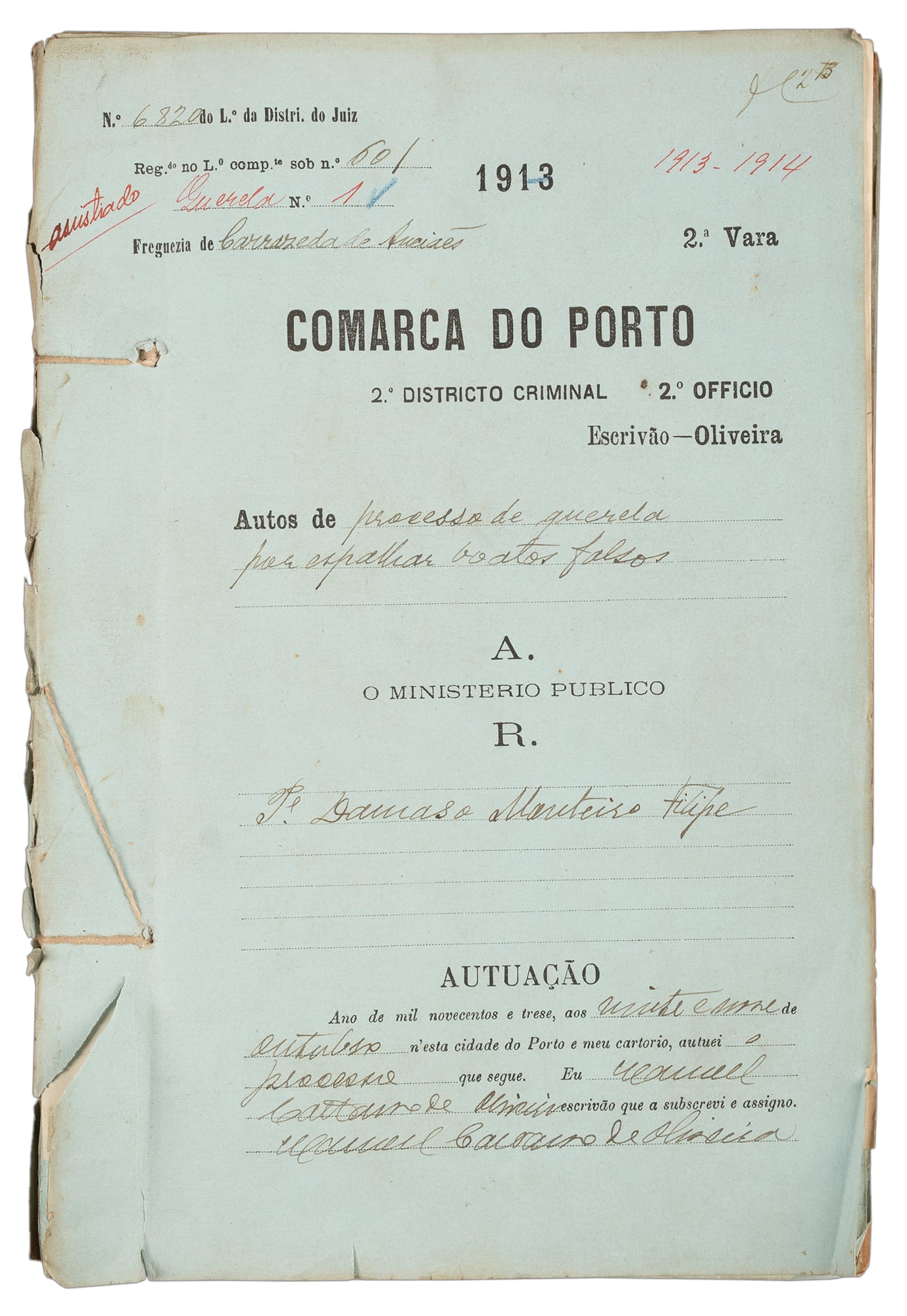 Proceso judicial de querella por difundir falsos rumores contra el padre Dâmaso Monteiro Filipe, párroco. El auto de procesamiento establece que: dijo públicamente y en presencia de varias personas que Paiva Couceiro dispone de elementos para invadir y atacar el país […]. Estas declaraciones son tales que alarman y sacuden el espíritu público, al tiempo que socavan la confianza en la seguridad y el orden público […] siendo infundadas, por lo que constituyen un delito de falsos rumores, previsto y castigado por el artículo 4.º del Decreto de 28 de diciembre de 1910. […] mandamientos de detención […]. El libelo es impugnado alegando que, si se le acusa de difundir falsos rumores, ello obedece no solo a la poca cultura del público que le escuchaba, sino también al deseo de prestar servicios a la República […] haciendo que en cada sacerdote se viera a un enemigo.